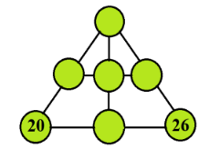 Задание 2. В треугольнике расположены семь кругов, в двух из них записаны данные числа (см. рис.).
