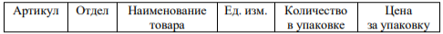 Таблица «Товар» содержит информацию об основных характеристиках каждого товара. Заголовок таблицы имеет следующий вид.