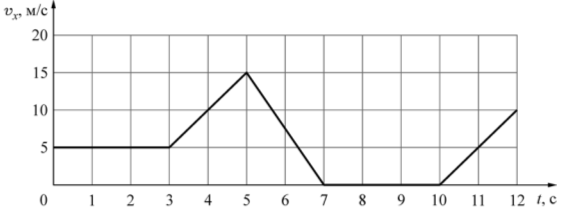 Задание 1. На рисунке приведён график зависимости проекции υx скорости тела на ось OX от времени t. Определите проекцию ускорения тела на ось OX в течение промежутка времени от 3 с до 5 с. Ответ запишите с учётом знака проекции.