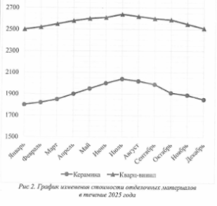 График изменения стоимости отделочных материалов в течение 2025 года