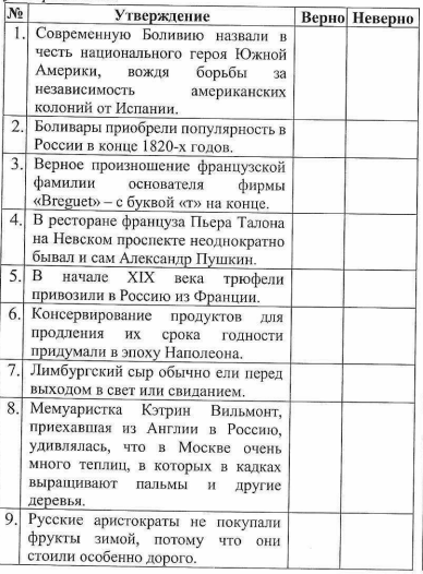 Опираясь на прочитанный текст, отметьте, какие утверждения соответствуют содержанию текста, а какие — нет. Отметьте «Верно» или «Неверно» для каждого утверждения.