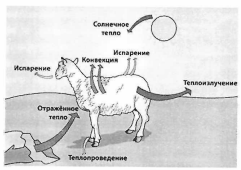 Потеря тепла животным происходит следующими способами: теплопроведением, конвекцией, испарением и теплоизлучением.