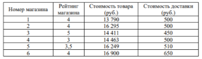 Задание 6. Сергей Петрович хочет купить в интернет-магазине микроволновую печь определённой модели. В таблице показано 6 предложений от разных интернет-магазинов.