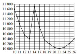 Задание 3. На рисунке точками показана цена никеля на момент закрытия биржевых торгов во все рабочие дни с 10 по 26 ноября 2008 года. По горизонтали указаны числа месяца, по вертикали — цена никеля в долларах США за тонну. Для наглядности точки на рисунке соединены ломаной линией.