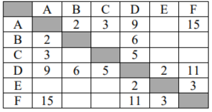 Задание 4. Между населёнными пунктами A, B, C, D, E, F построены дороги, протяжённость которых (в километрах) приведена в таблице.
