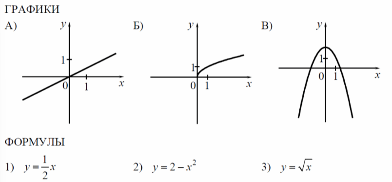 Задание 11. Установите соответствие между графиками функций и формулами, которые их задают.