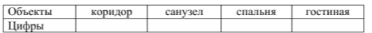 Задание 1. Для объектов, указанных в таблице, определите, какими цифрами они обозначены на плане. Заполните таблицу, в бланк перенесите последовательность четырёх цифр без пробелов, запятых и других дополнительных символов.