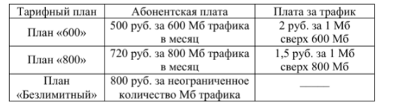 Задание 5. В квартире планируется подключить интернет. Предполагается, что трафик составит 650 Мб в месяц, и исходя из этого выбирается наиболее дешёвый вариант. Интернет-провайдер предлагает три тарифных плана. Сколько рублей нужно будет заплатить за месяц, если трафик действительно будет равен 650 Мб?