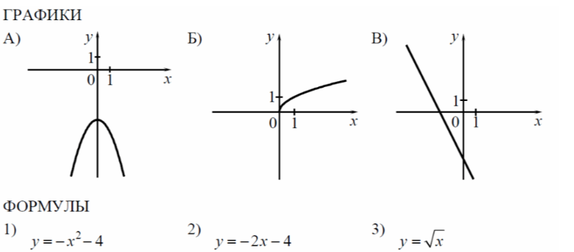 Задание 11. Установите соответствие между графиками функций и формулами, которые их задают.
