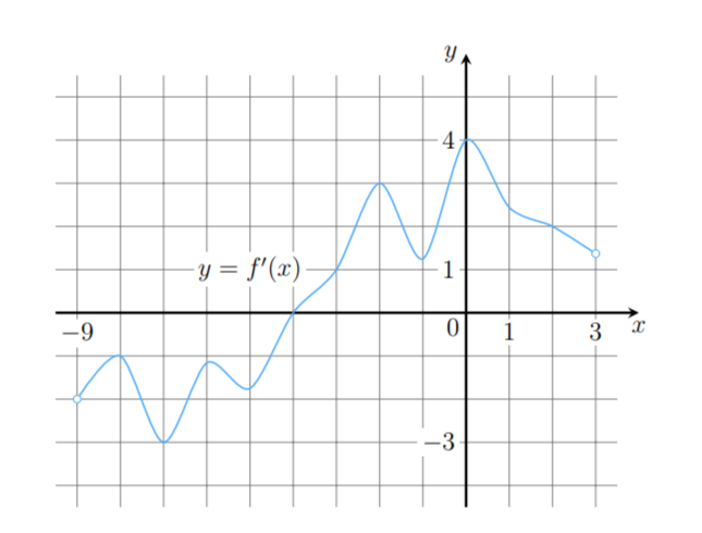 Задание 8. На рисунке изображён график 𝑦 = 𝑓′ (𝑥) — производной функции 𝑓 (𝑥), определённой на интервале (-9:3). В какой точке отрезка [-7;-1] функция f(x) принимает наибольшее значение?