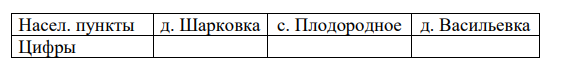 Задание 1. Пользуясь описанием, определите, какими цифрами на плане обозначены населённые пункты. Заполните таблицу, в бланк ответов перенесите последовательность трёх цифр без пробелов, запятых и других дополнительных символов.