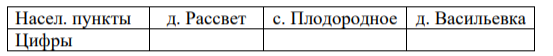 Задание 1. Пользуясь описанием, определите, какими цифрами на плане обозначены населённые пункты. Заполните таблицу, в бланк ответов перенесите последовательность трёх цифр без пробелов, запятых и других дополнительных символов.
