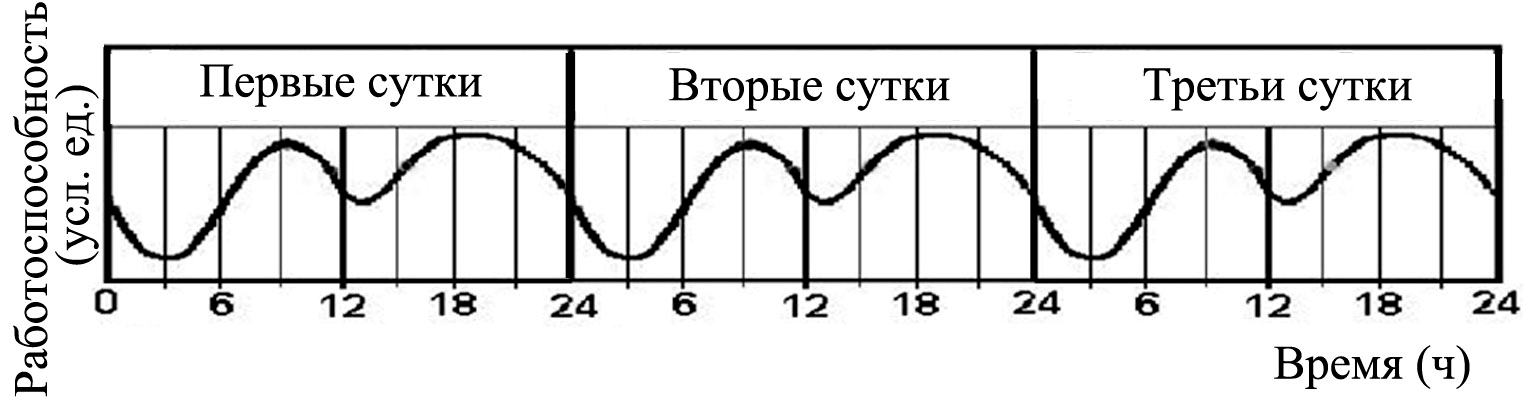 Задание 1. На графике отображено изменение работоспособности человека в течение трёх суток.