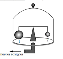 Задание 4. Прочитайте текст и вставьте на места пропусков слова (словосочетания) из приведённого списка. На весах (см. рисунок) установлен герметично закрытый стеклянный колпак, заполненный воздухом. Внутри колпака на рычажных весах уравновешены два шара разного объёма (V1 > V2). На каждый из шаров действуют три силы: сила тяжести, (А) и сила Архимеда.