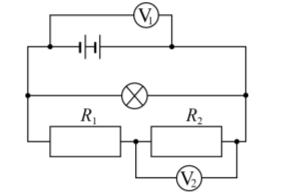 Задание 9. В электрической цепи (см. рисунок) вольтметр V1 показывает напряжение 2 В, а вольтметр V2 – напряжение 0,5 В.