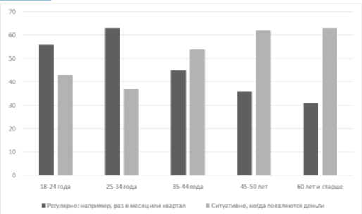 Задание 12. В ходе опросов совершеннолетних граждан социологи изучали, с какой регулярностью люди разного возраста откладывают денежные средства на инвестиции.
