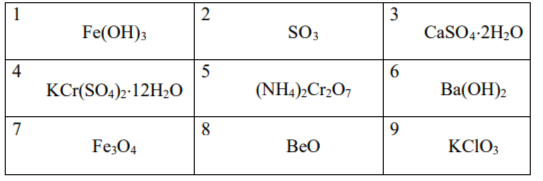 Задание 5. Среди предложенных формул веществ, расположенных в пронумерованных ячейках, выберите формулы: