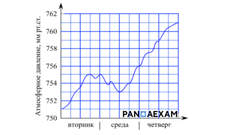 По горизонтали указаны дни недели и время, по вертикали — значения атмосферного давления (в миллиметрах ртутного столба).