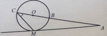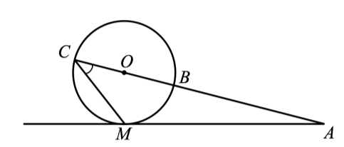 Задание 1. Из точки A к окружности с центром O проведены касательная AM, которая пересекает окружность в точке B, причём AB<AC. Найдите величину угла ACM, если ∠MAC=42. Ответ дайте в градусах.