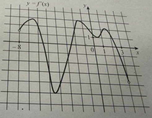 Задание 8. На рисунке изображён график y = f'(x) — производной функции f(x), определённой на интервале (-8; 3). Найдите промежутки возрастания функции f(x). В ответе укажите сумму целых точек, принадлежащих этим промежуткам.