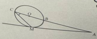 Задание 1. Из точки A к окружности с центром O проведены касательная AM, которая пересекает окружность в точке B, причём AB<AC. Найдите величину угла ACM, если ∠MAC=42. Ответ дайте в градусах.