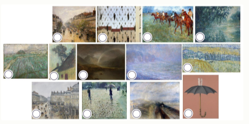Задание 3. Перед Вами работы европейских художников, созданные в период с конца XVIII и до середины XX века, интерпретирующие тему дождя. Каждый автор пишет дождь, погружая зрителей в особое настроение, улавливая и воплощая разные состояния природы и людей. Пожалуйста, посмотрите, внимательно на источники. Обратите внимание на решение пространства, масштаб изображённых объектов и персонажей; на характер мазка и линий, на работу с плоскостью и объёмом, на цвет и свет. Составьте пары изображений так, чтобы в каждой паре были представлены две работы, принадлежащие одному автору.