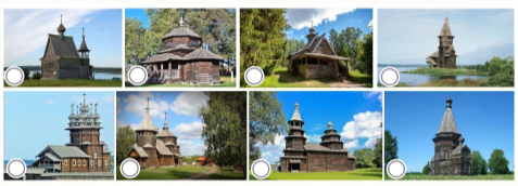 Какой из храмов, собранных в задании, подражает каменным церквям: его стены сделаны из брёвен, но обработаны под гладкий камень, а завершение похоже на широкие купола эпохи классицизма? Укажите эту иллюстрацию.