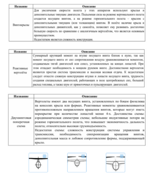 Задание 8. Соотнесите, названия и описания со схемами построения БПЛА вертолетного типа.