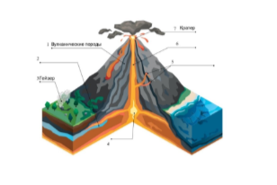 Задание 7. Рассмотрите вулкан и подпишите его части под № 2, 6, 4