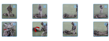 На изображениях продемонстрировано, как осуществить переворот раненого на живот «с зацепом», расставьте картинки в правильной последовательности.