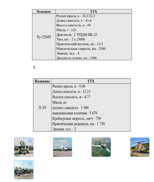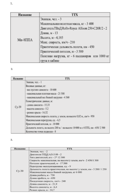 Задание 2. Соотнесите образцы военной техники военно-воздушных сил Вооруженных Сил РФ с их названием и характеристиками.