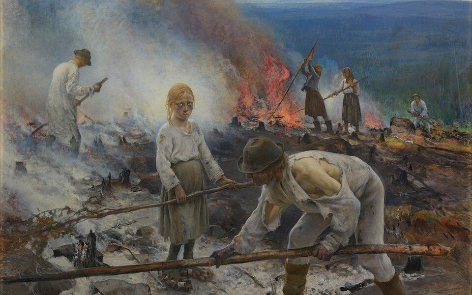 Задание 14. Многие народы использовали подсечно‑огневое земледелие — способ выращивания растений на лесных территориях с очень неплодородной почвой. Деревья на выбранном участке сжигались, зола удобряла почву необходимыми растениям элементами (но, к сожалению, очень небольшим количеством азота, большая часть которого улетучивалась при горении). Каждый год почва обеднялась, так как элементы вымывались дождями. Участок так или иначе использовали до полной потери им плодородности и зарастания лесом.