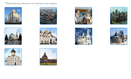 3. Перед Вами – изображения знаменитых памятников русский культуры, созданных до XVIII-го века. Соотнесите описание города с памятником, который в нём расположен.