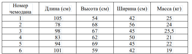Задание 6. В таблице приведены данные о шести чемоданах