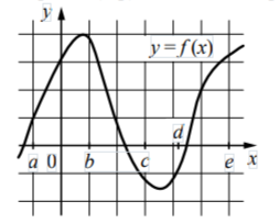 Задание 7. На рисунке изображён график функции y = f (x). Числа a, b, c, d и e задают на оси Ox интервалы. Пользуясь графиком, поставьте в соответствие каждому интервалу характеристику функции или её производной.