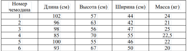 В ответе укажите номера всех выбранных чемоданов без пробелов, запятых и других дополнительных символов.