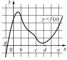 Задание 7. На рисунке изображён график функции y = f (x). Числа a, b, c, d и e задают на оси Ox интервалы. Пользуясь графиком, поставьте в соответствие каждому интервалу характеристику функции или её производной.