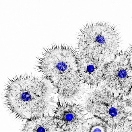 Задание 14. На фотографии изображены клетки яичников моли. Синим цветом обозначены ядра клеток.