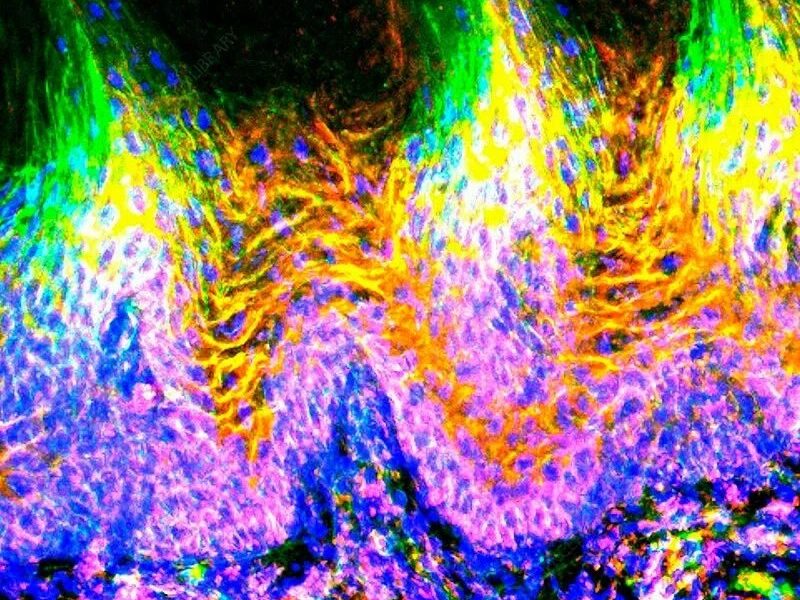 Задание 15. На фото показаны флуоресцентно окрашенные клетки эмбриона цыплёнка.