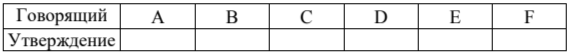 Задание 1. Вы услышите 6 высказываний. Установите соответствие между высказываниями каждого говорящего A–F и утверждениями, данными в списке 1–7. Используйте каждое утверждение, обозначенное соответствующей цифрой, только один раз. В задании есть одно лишнее утверждение. Вы услышите запись дважды. Занесите свои ответы в таблицу.
