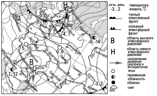 Задания 5 и 6 выполняются с использованием приведённой ниже карты погоды.