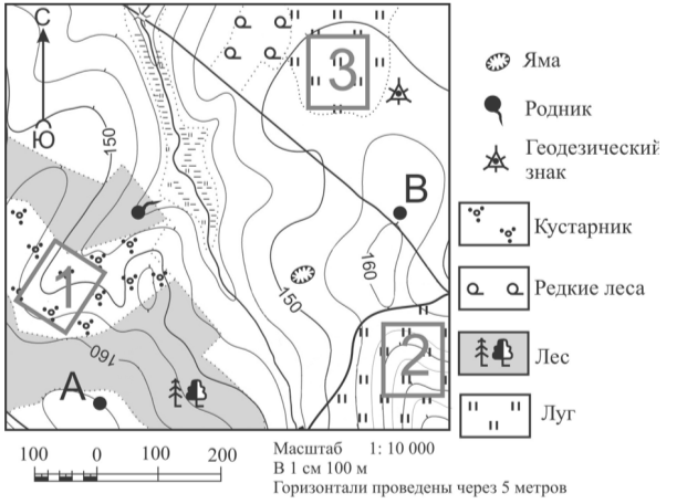 Задание 10. Определите по карте, в каком направлении от точки В находится родник.