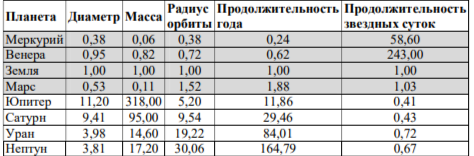 Задание 1. В таблице даны сведения о планетах Солнечной системы. За единицу измерения размеров, массы планет, продолжительности звездных суток и года на планете часто принимают соответствующую характеристику Земли.