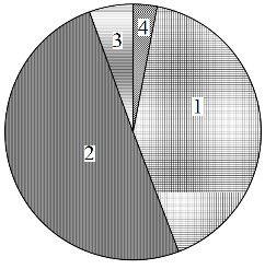 Задание 2. На круговой диаграмме показано распределение масс планет земной группы: Меркурия, Венеры, Земли и Марса. Пользуясь данными таблицы 1, установите соответствие между планетами и номерами секторов диаграммы.