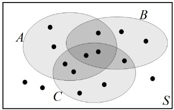 Задание 4. На диаграмме Эйлера изображены три события A, B и C в случайном опыте S. Всего в опыте 15 равновозможных элементарных событий, они показаны точками. Найдите вероятность события (A∪C)∩ B.