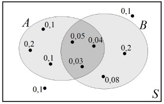 Задание 5. На диаграмме Эйлера изображён случайный опыт S , в котором 10 элементарных событий, показанных точками. Около каждого исхода подписана его вероятность. Найдите условную вероятность P( A B).
