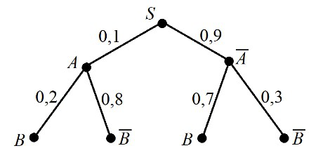 Задание 6. На рисунке изображено дерево некоторого случайного опыта S , в котором рассматриваются события A и B. Найдите вероятность события B.