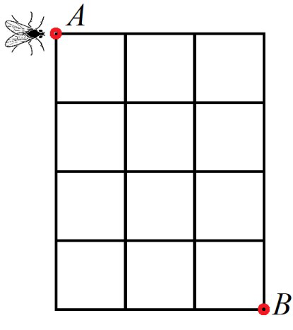Задание 8. Муха ползёт по линиям квадратной решётки из точки A в точку B (см. рисунок). Она двигается только вправо либо вниз. Сколько у мухи есть различных путей?