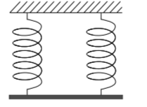 Задание 7. Однородный стержень массой 2 кг подвешен на двух одинаковых невесомых вертикальных пружинах (см. рисунок). Какова жёсткость каждой пружины, если удлинение каждой пружины равно 4 см?