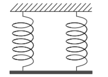 Задание 7. Однородный стержень (см. рисунок) подвешен на двух одинаковых вертикальных пружинах жёсткостью 800 Н/м каждая. Какова масса стержня, если удлинение каждой пружины равно 3 см?